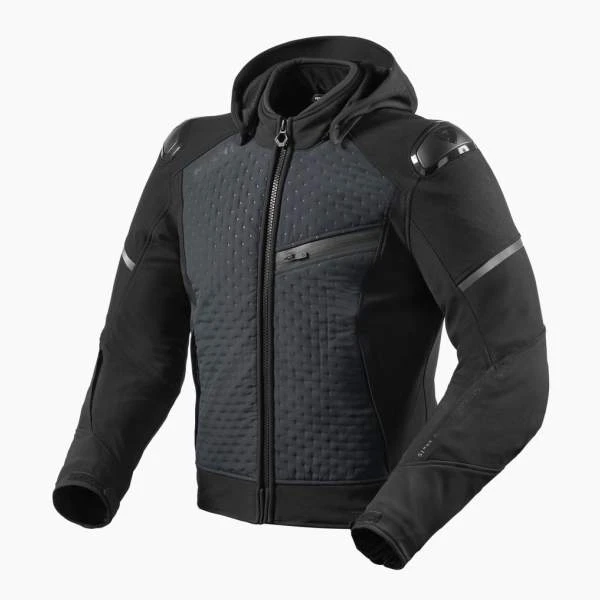 Ook hebben we een uitneembare thermovoering aangebracht om je warm te houden op koude, regenachtige dagen. Op warmere dagen laat de voering zich eenvoudig verwijderen en leveren de gedeeltelijke perforaties in deze mesh motorjas een directe stroom van rijwind naar het lichaam. Nog even qua looks: het ‘dark’ thema van de Iridium H2O krijgt een nog specialere dimensie door de contrasterende weefselstructuren. Ook de afneembare capuchon past in dat contrasterende plaatje en geeft bovendien meerwaarde qua fashion/streetwear-factor.